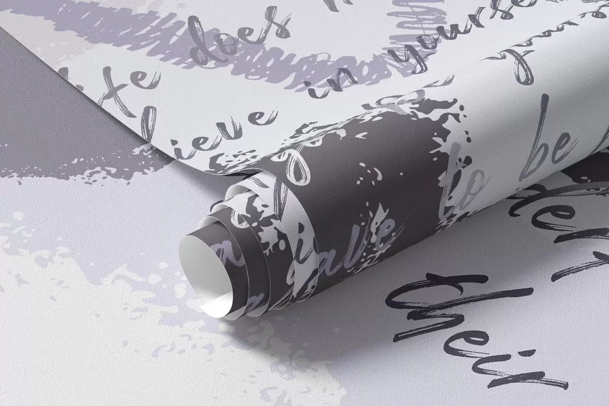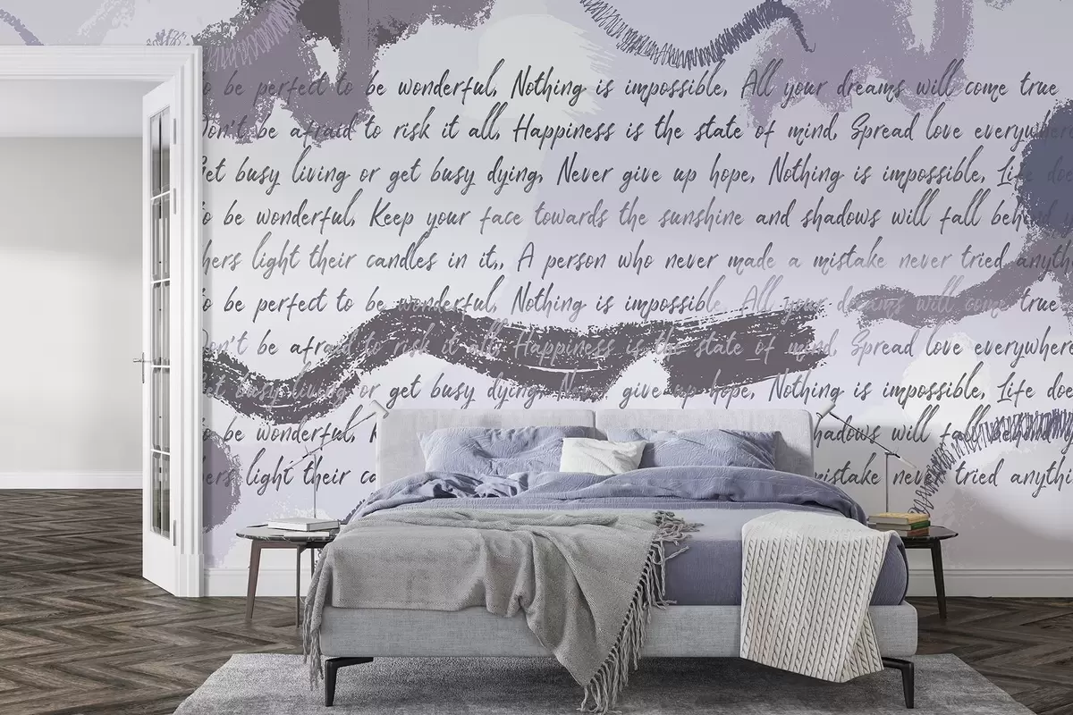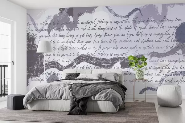 Murais de parede Design com citações inspiradoras, abstração e cores roxas Nr. w03909v2