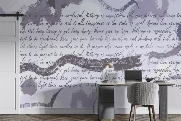 Murais de parede Design com citações inspiradoras, abstração e cores roxas Nr. w03909v2