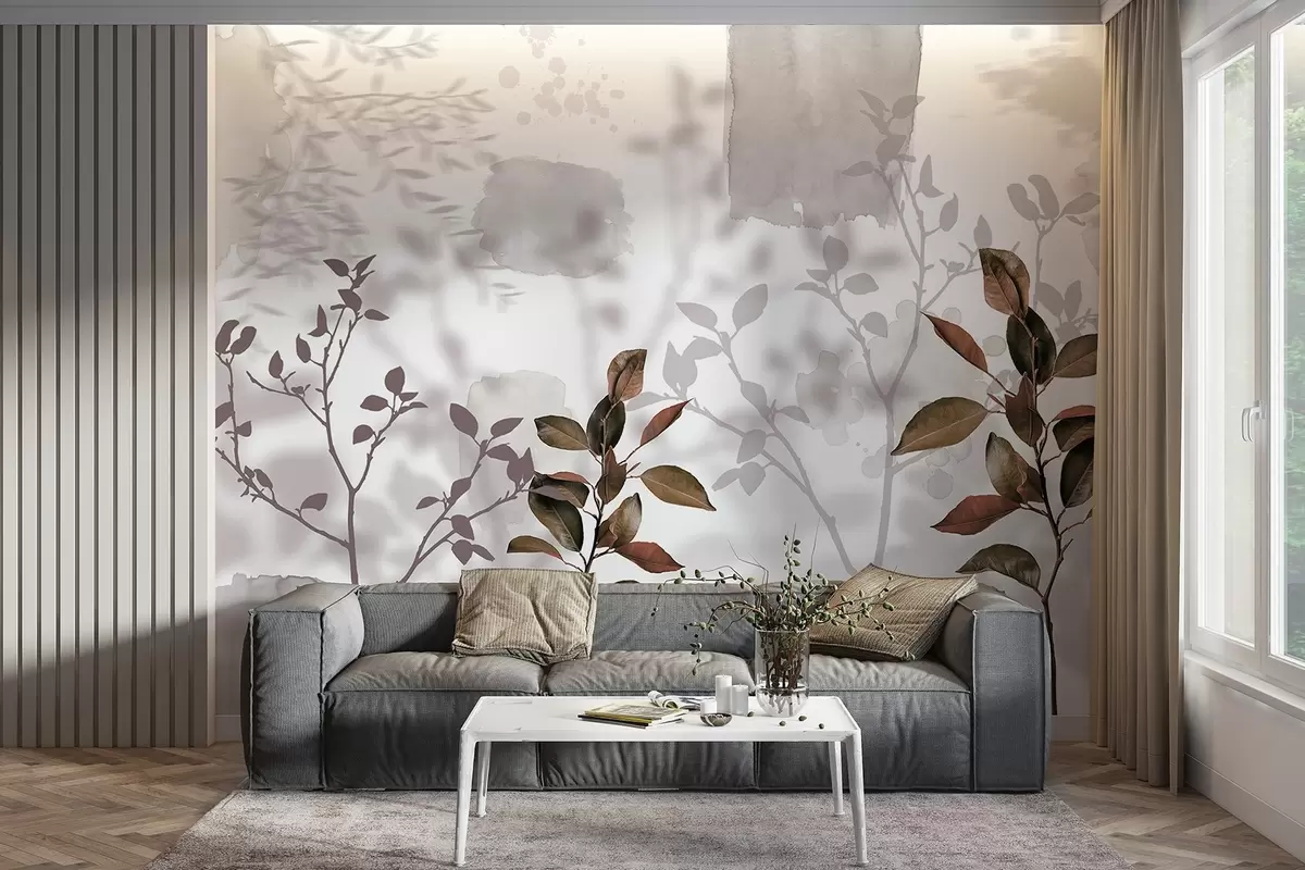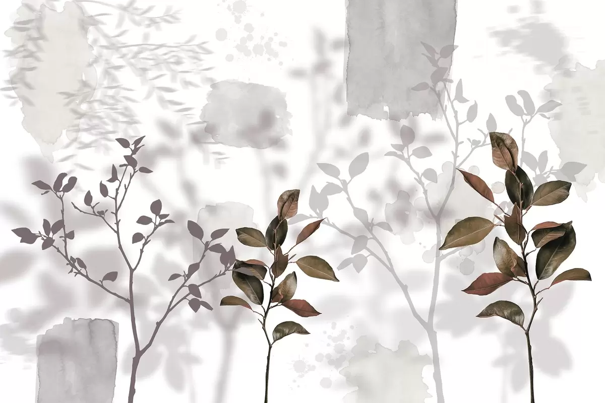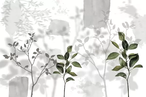 Murais de parede Folhas de limoeiro, sombras de galhos de árvores, natureza, aquarela Nr. w03910
