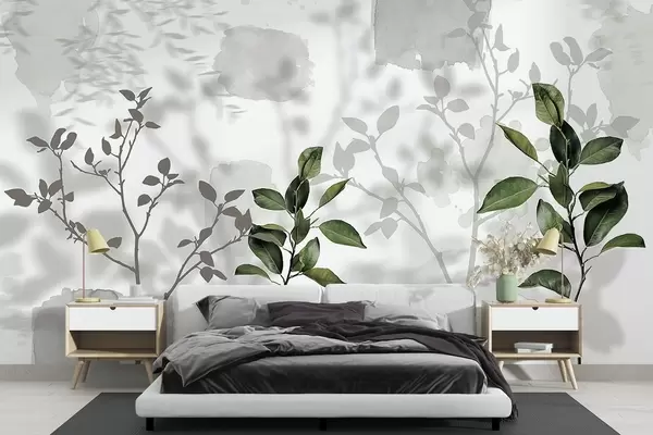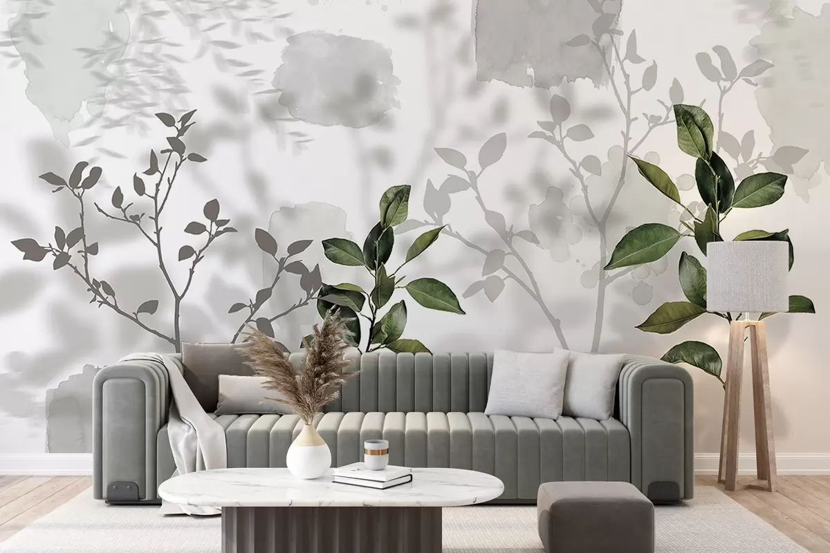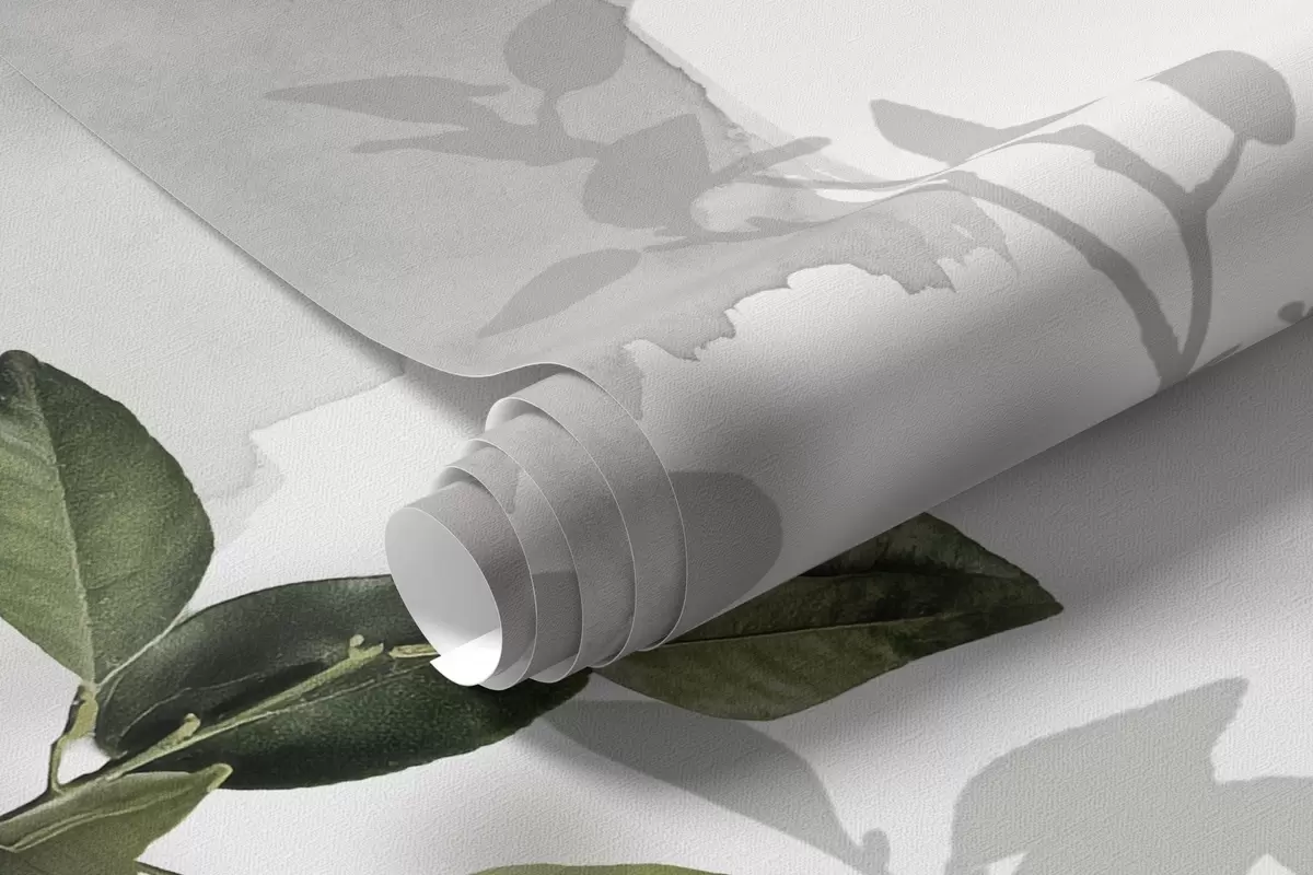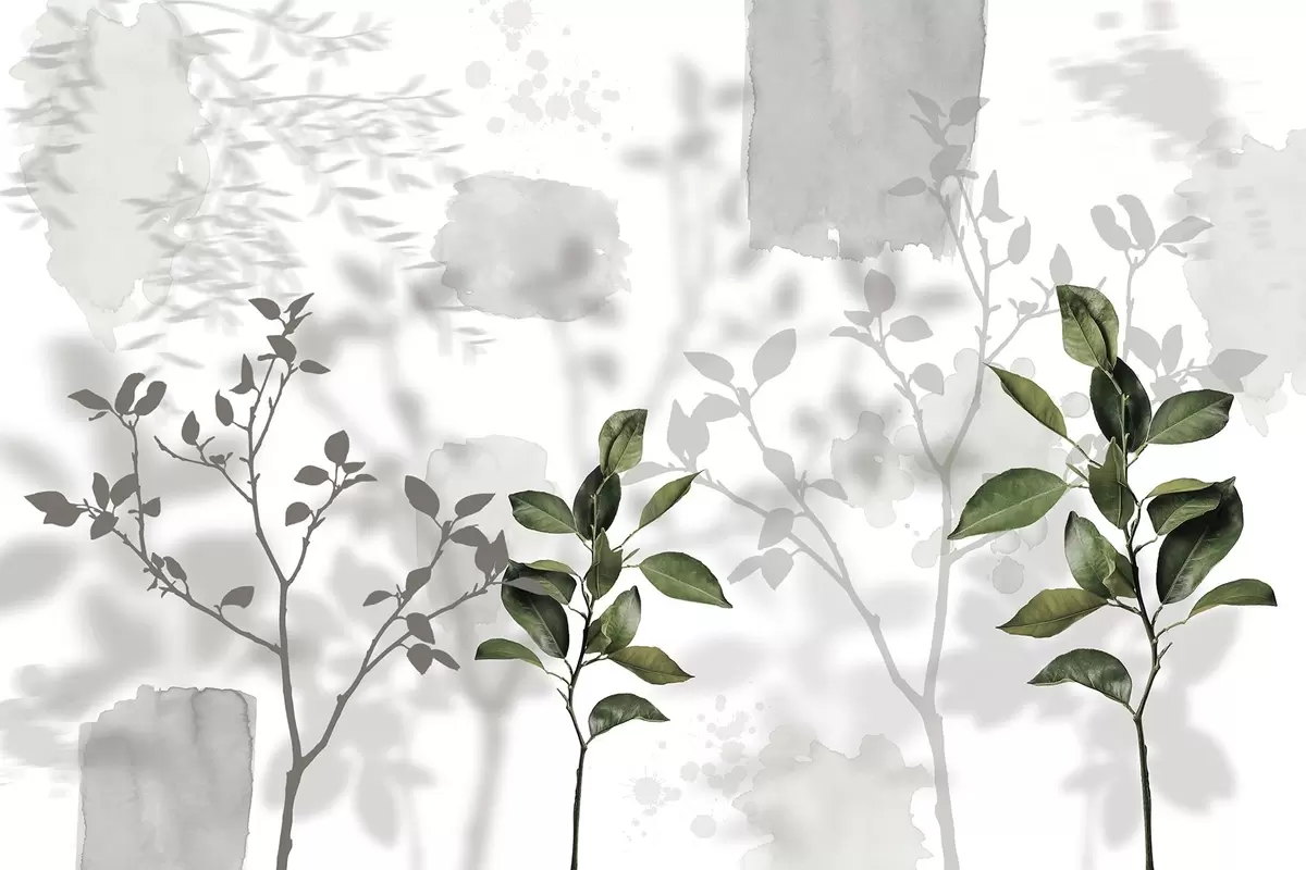 Murais de parede Folhas de limoeiro, sombras de galhos de árvores, natureza, aquarela, verde Nr. w03910v1
