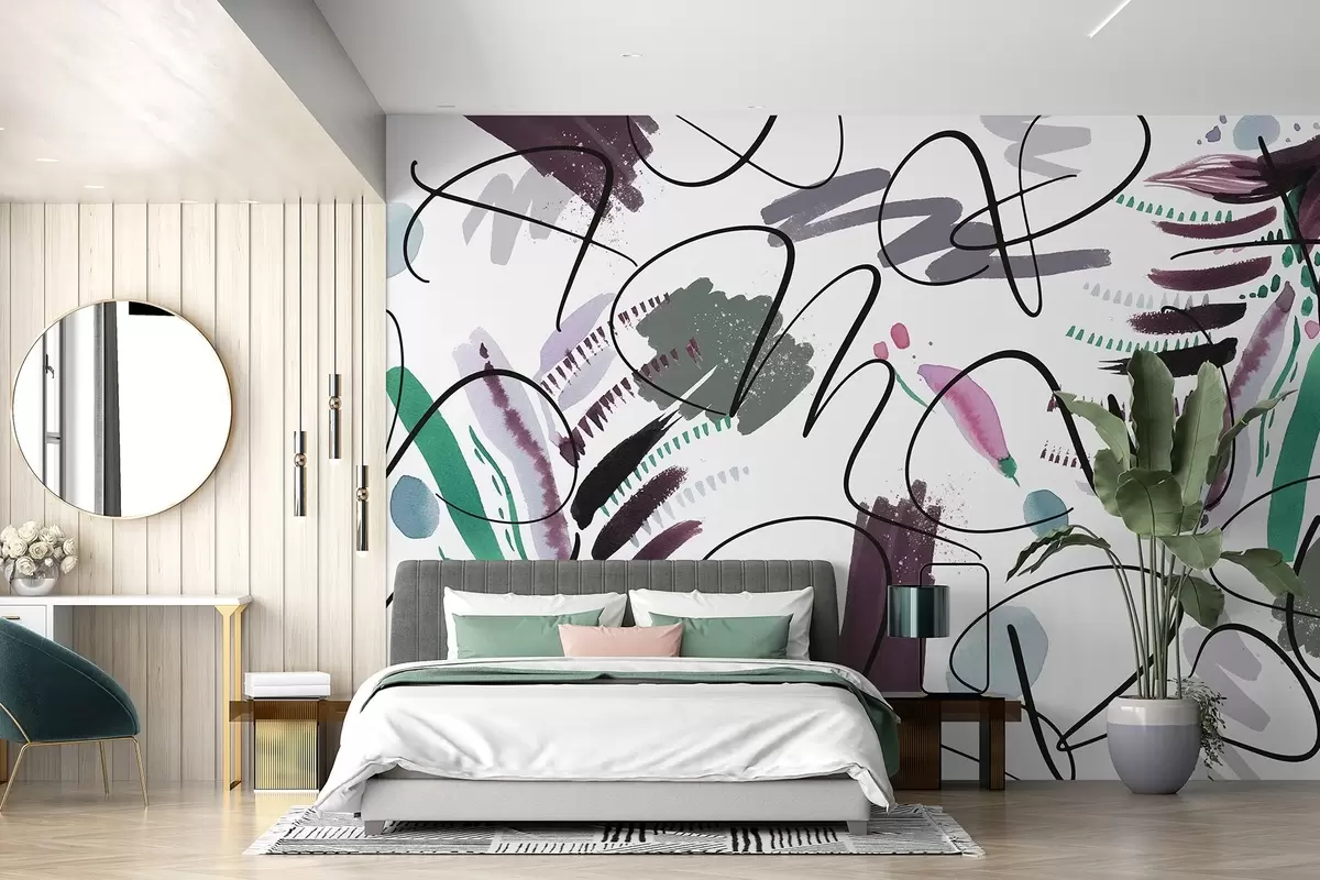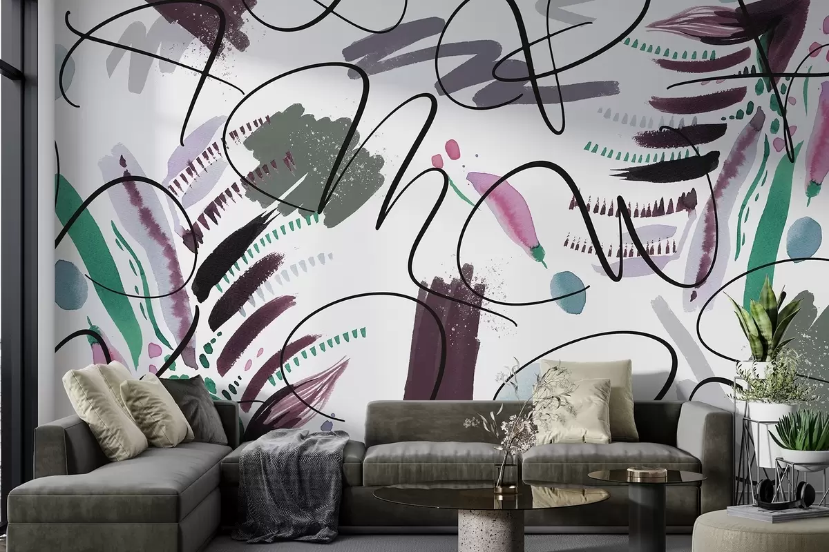 Murais de parede Letras com tinta, caligrafia, pinceladas, cores pastéis, abstração Nr. w03912v1