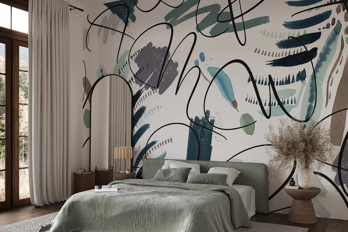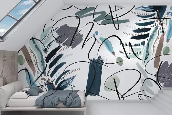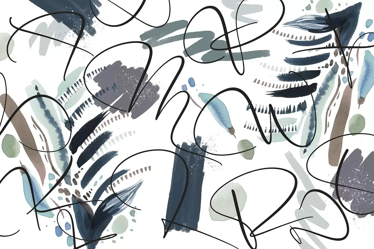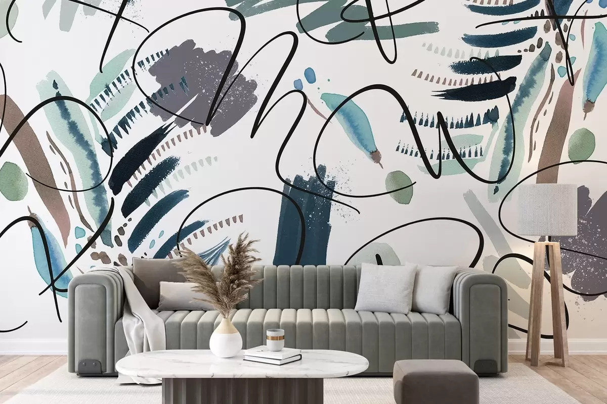 Murais de parede Letras com tinta, caligrafia, pinceladas, cores azuis, abstração Nr. w03912v2
