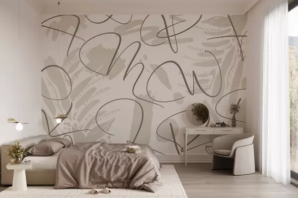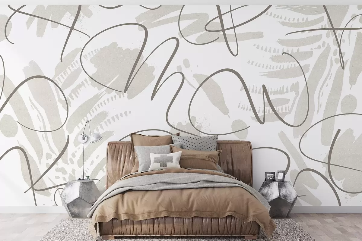 Murais de parede Abstração caligráfica com letras, pinceladas, cor bege Nr. w03913