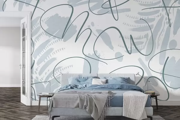 Murais de parede Abstração caligráfica com letras, pinceladas e cor azul Nr. w03913v1
