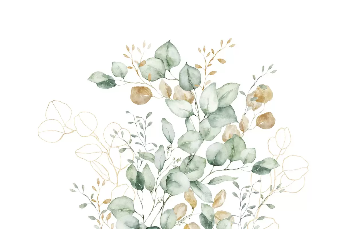Murais de parede Vegetação e galhos imitação de aquarela texturizada, tons de verde e amarelo Nr. w03927