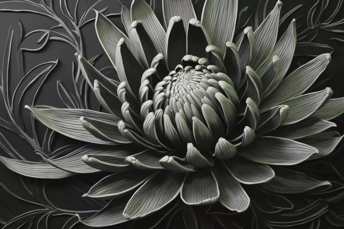Murais de parede Flor Protea, verde e preta Nr. w03930v3