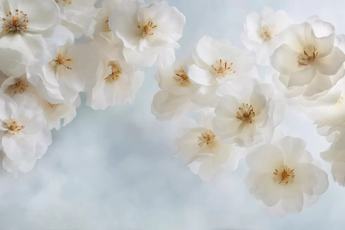 Murais de parede Flores grandes e delicadas em um fundo azul claro Nr. w03931v1