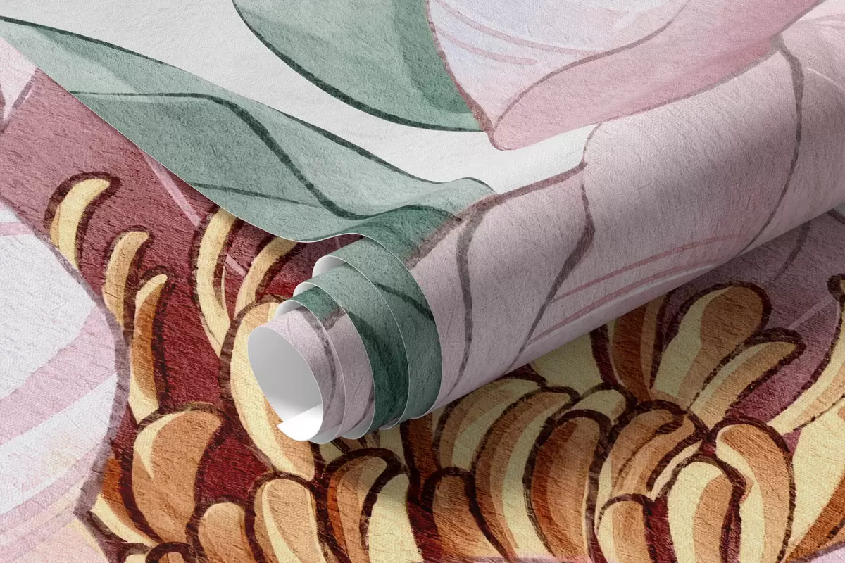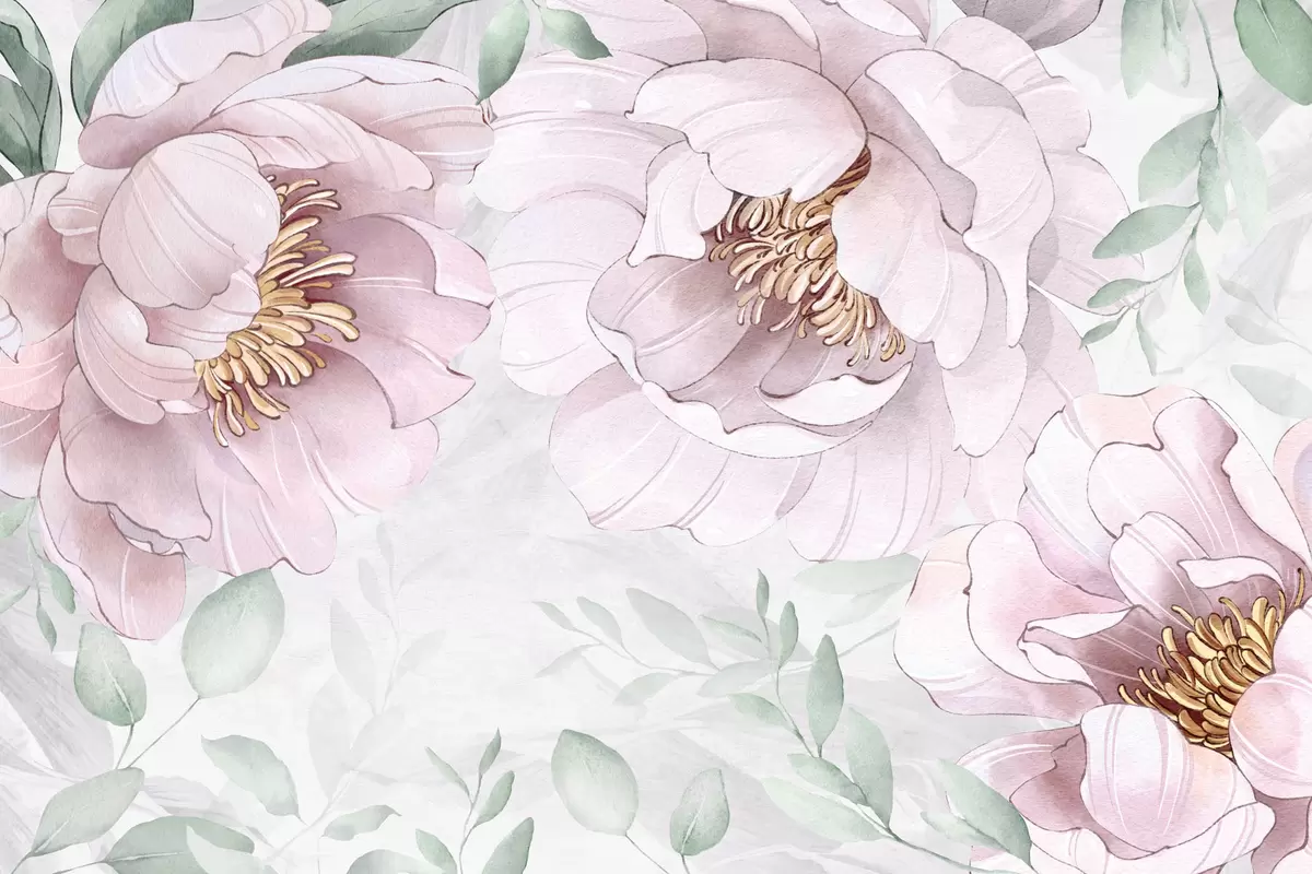 Murais de parede Aquarela de imitação de peônias rosa Nr. w03932v2