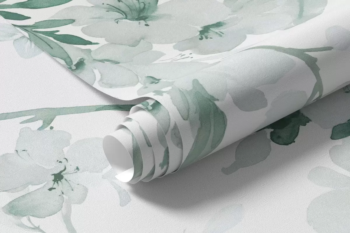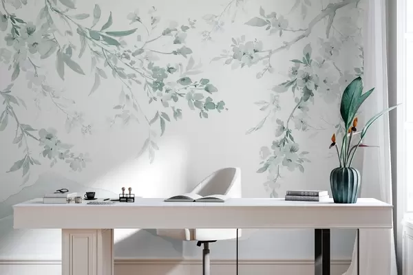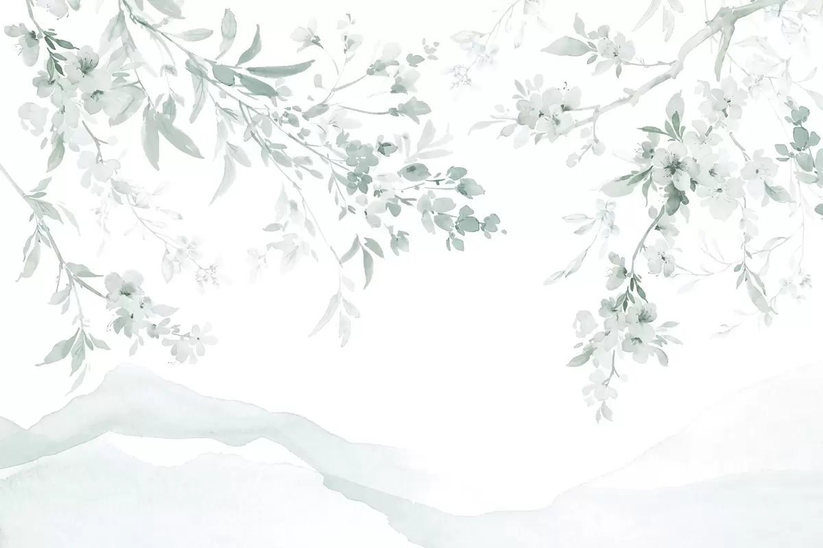 Murais de parede Ramos floridos, imitação de aquarela, tons de verde Nr. w03935v3