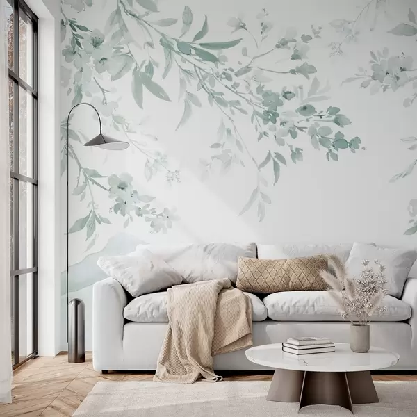 Murais de parede Ramos floridos, imitação de aquarela, tons de verde Nr. w03935v3