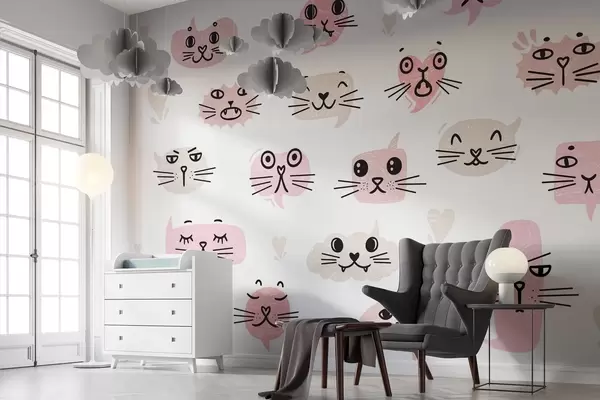 Murais de parede Rostos de gatos em tons de rosa Nr. w03951v1