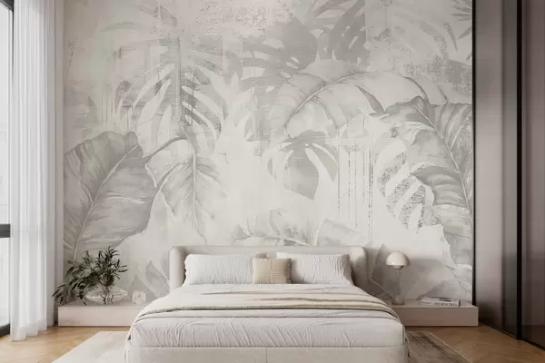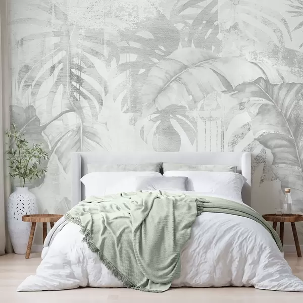 Murais de parede Folhas tropicais em estilo grunge, tons monocromáticos Nr. w03956v1