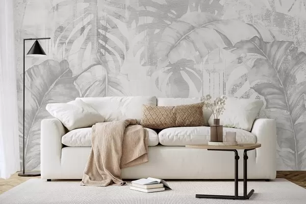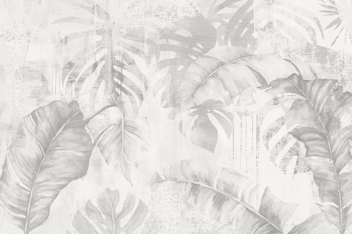 Murais de parede Folhas tropicais em estilo grunge, tons monocromáticos Nr. w03956v1