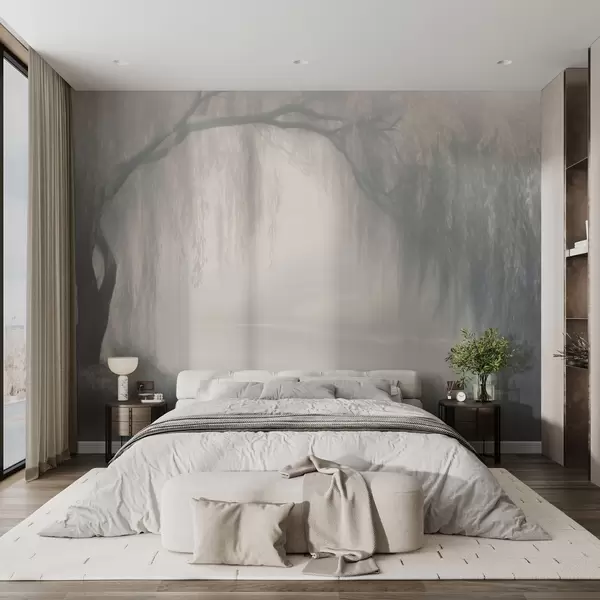 Murais de parede Banco de salgueiros místicos na neblina da manhã Nr. w03995