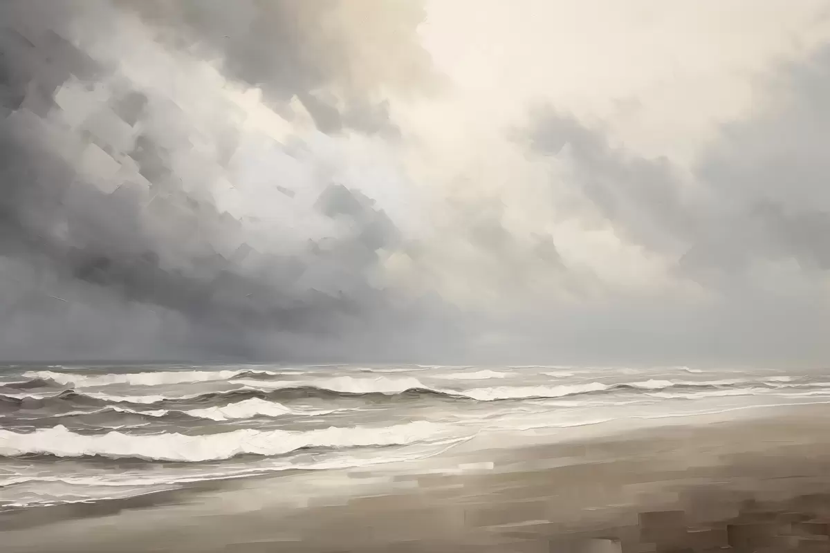 Murais de parede Mar na chuva, tons de cinza e bege, composição atmosférica Nr. w03998