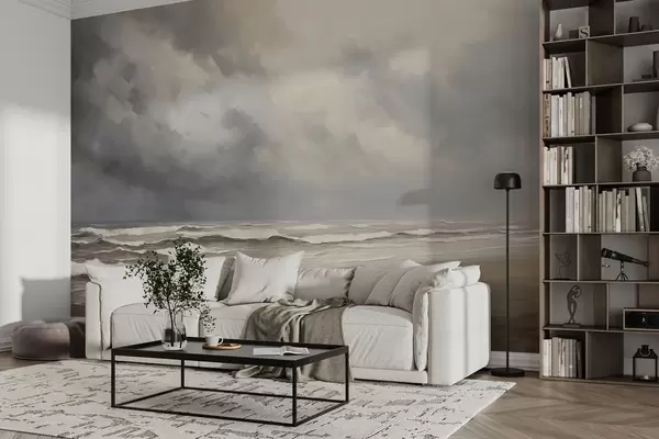 Murais de parede Mar na chuva, tons de cinza e bege, composição atmosférica Nr. w03998