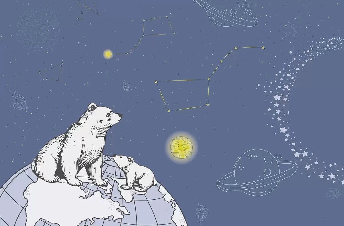 Murais de parede Ursos e estrelas em um fundo azul, astronomia noturna Nr. w04002v1