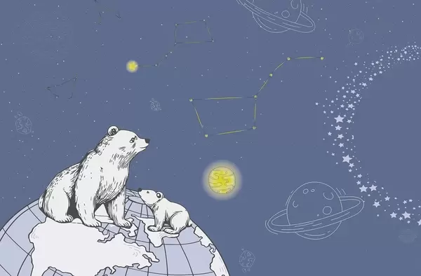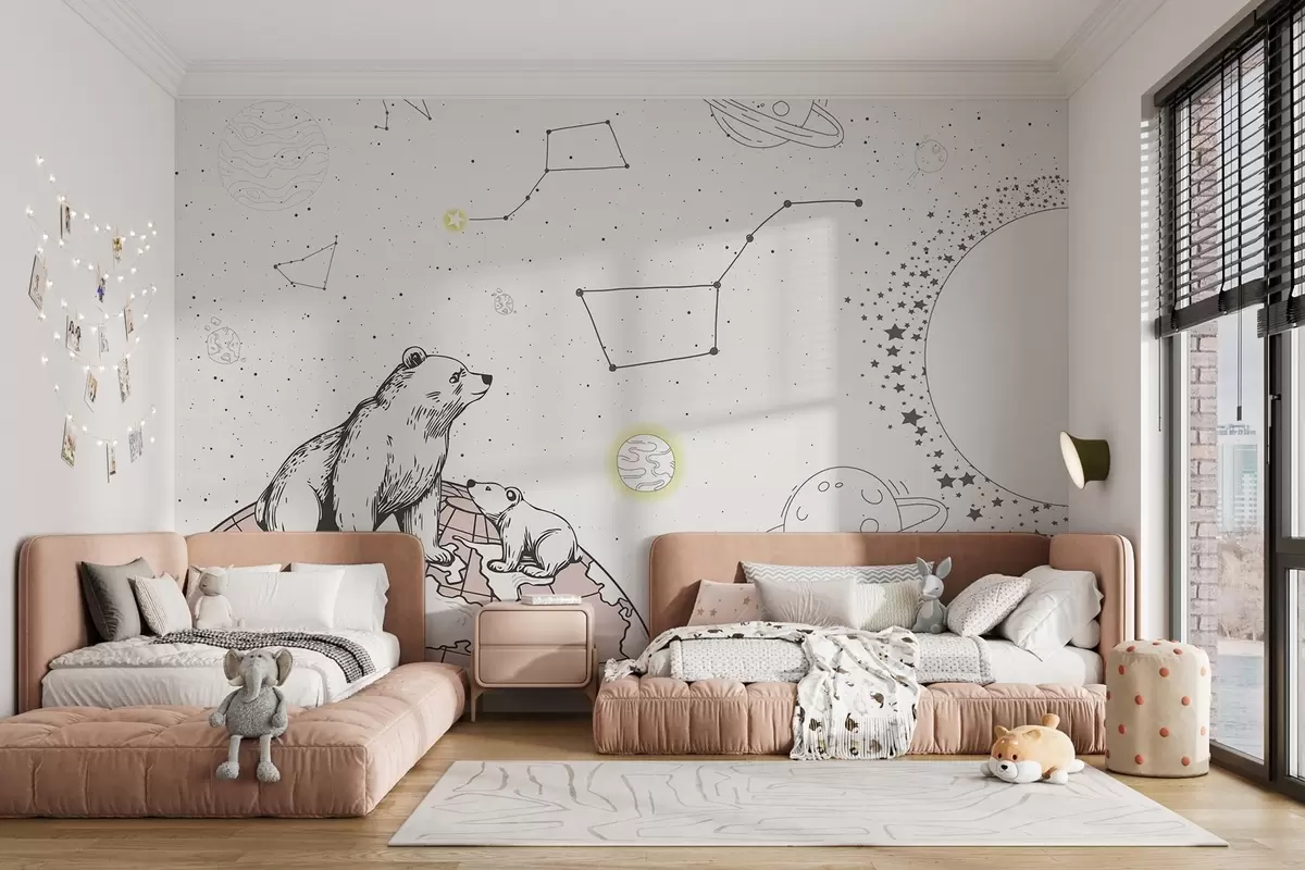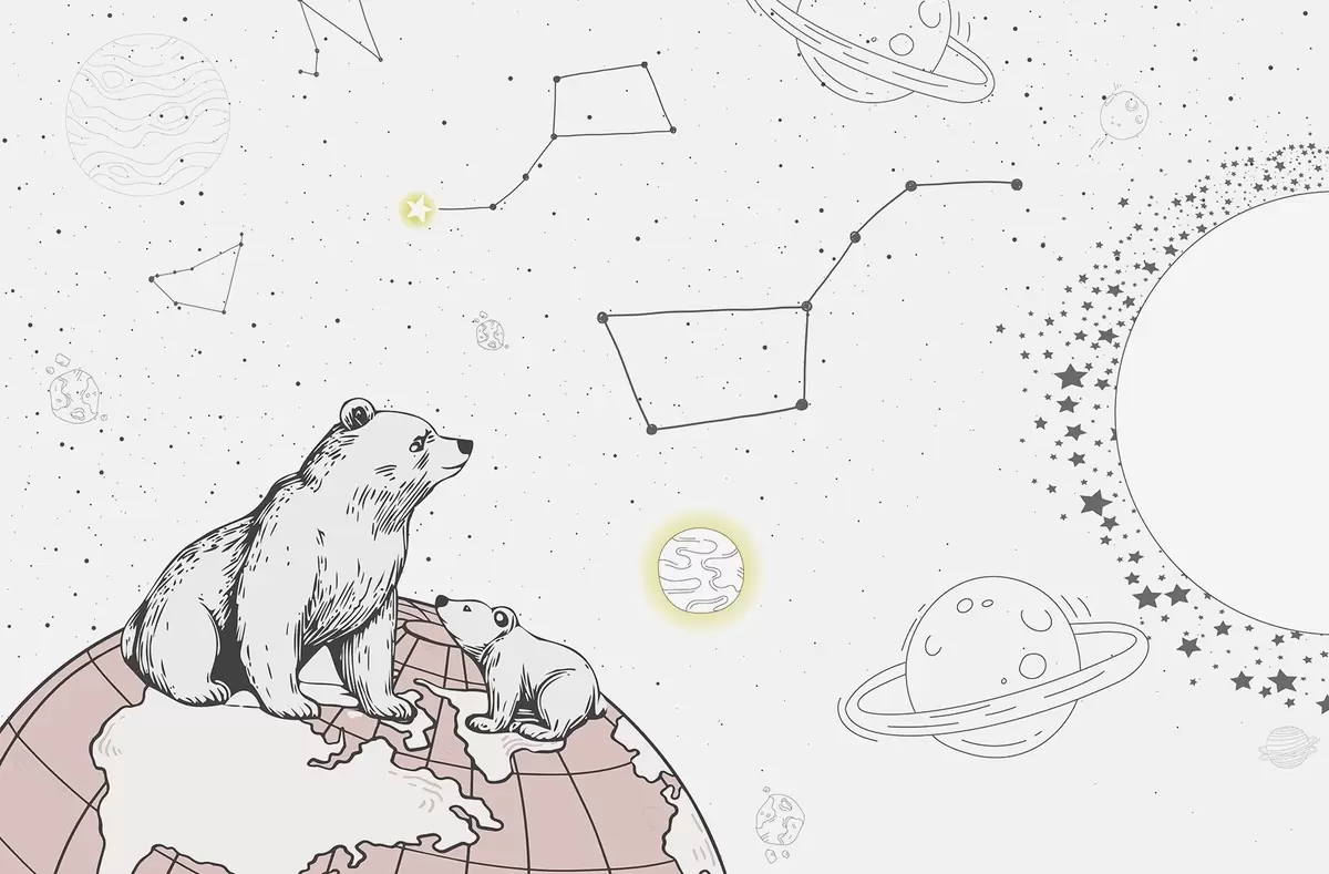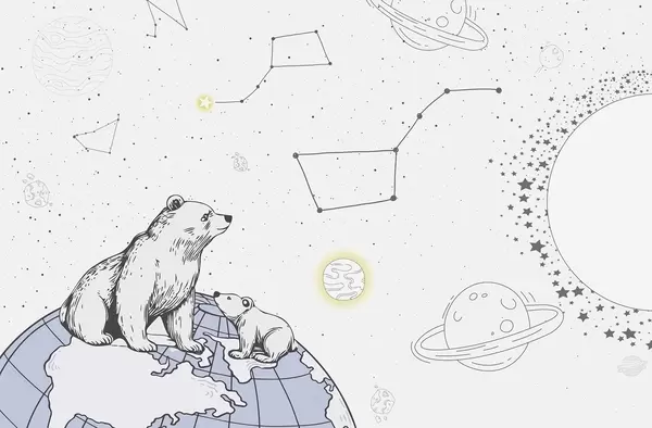 Murais de parede Ursos e estrelas em fundo marrom, tema de astronomia Nr. w04002v2