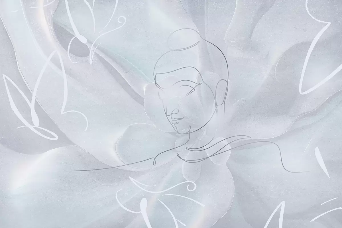Murais de parede Abstração floral com desenho de linha do Buda, cores azuis Nr. w04004v1