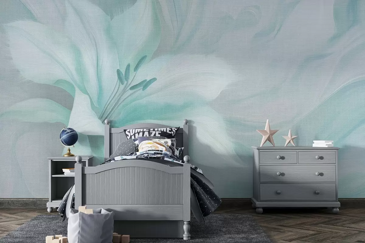 Murais de parede Flor de lírio abstração fluida, floral, cores azul-marinho Nr. w04006v3