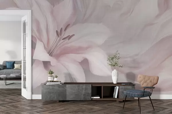 Murais de parede Abstração fluida de flor de lírio, floral, cores rosa e bege Nr. w04006v4