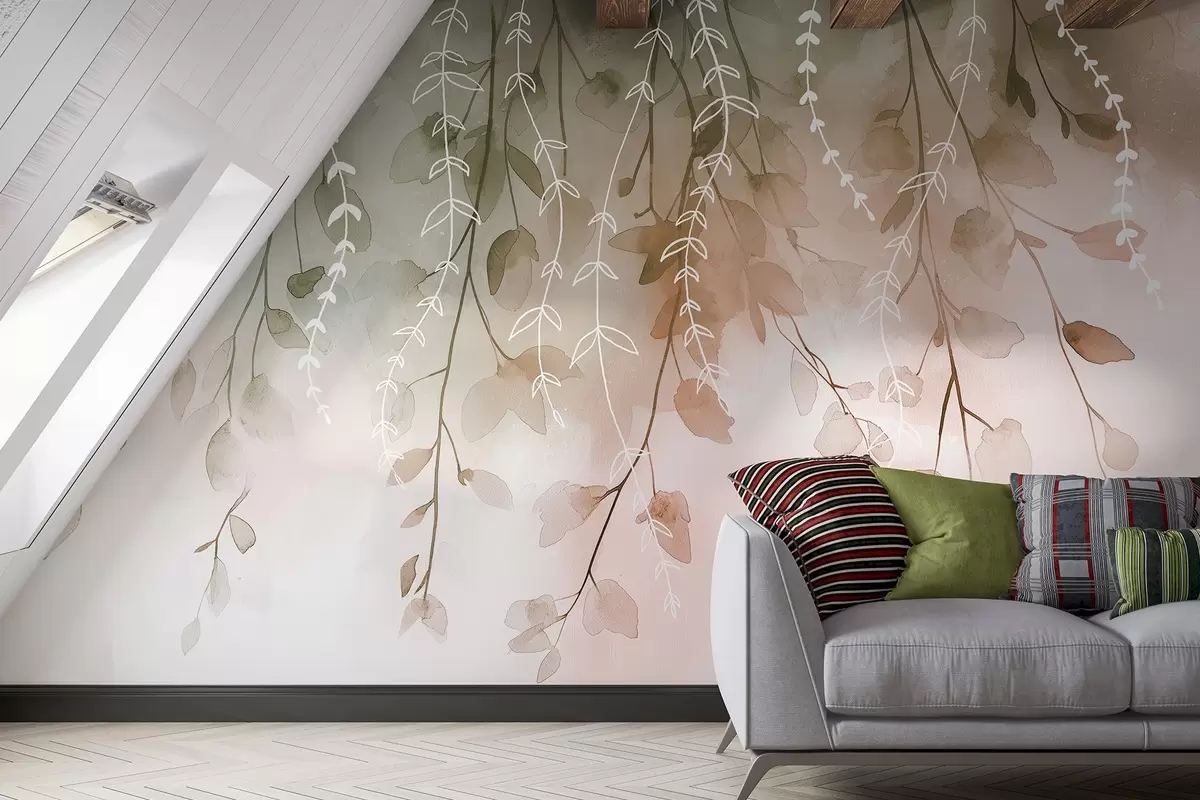 Murais de parede Galhos com folhas em estilo aquarela, cores naturais de outono Nr. w04007v1