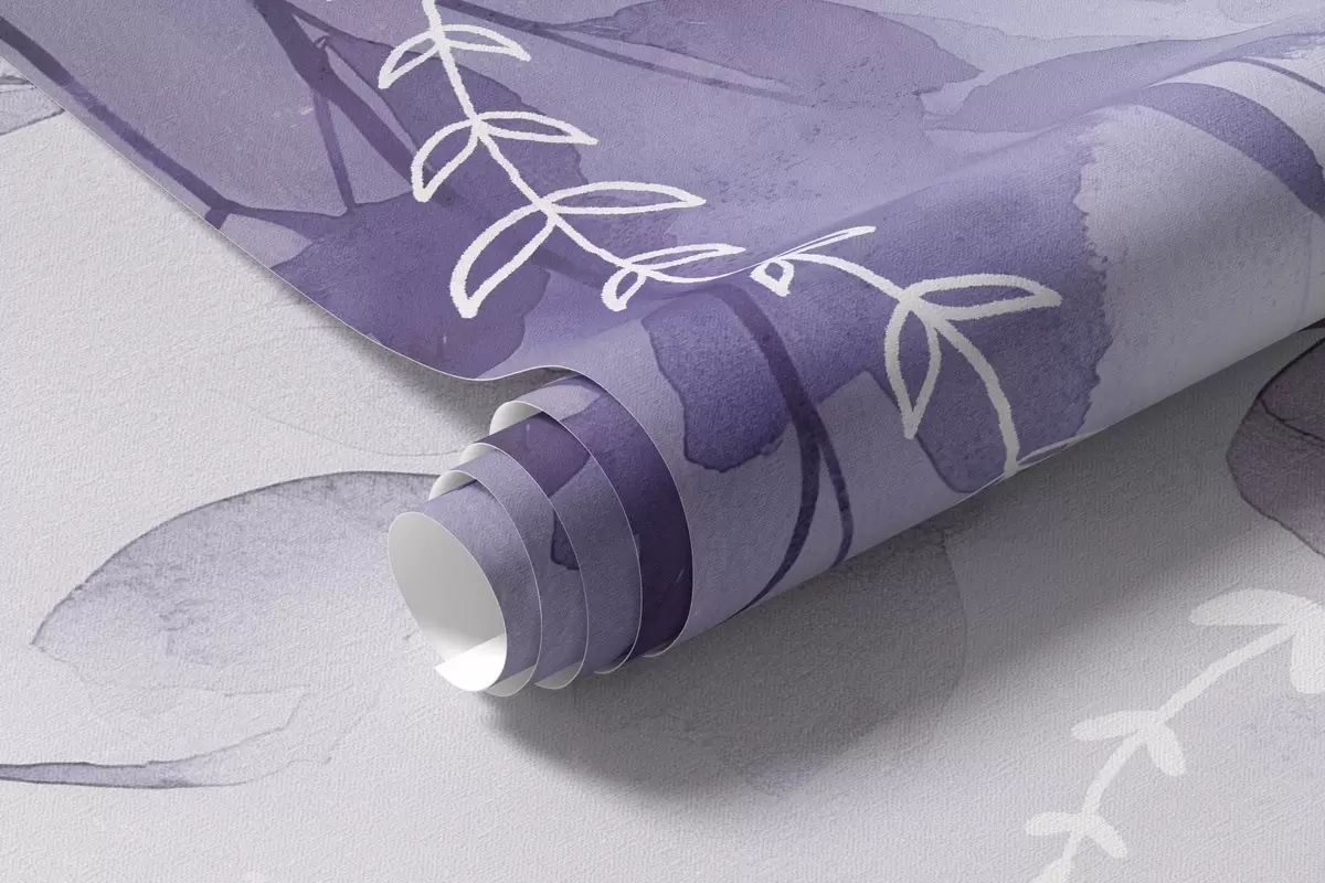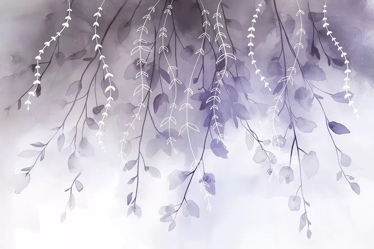 Murais de parede Galhos com folhas em estilo aquarela, cores roxas naturais Nr. w04007v2