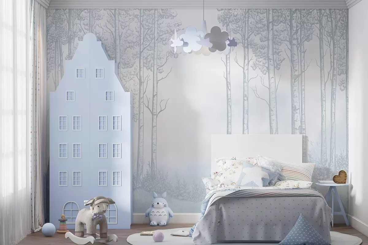 Murais de parede Floresta com bétulas, minimalismo, natureza, paleta de cores azul Nr. w04009