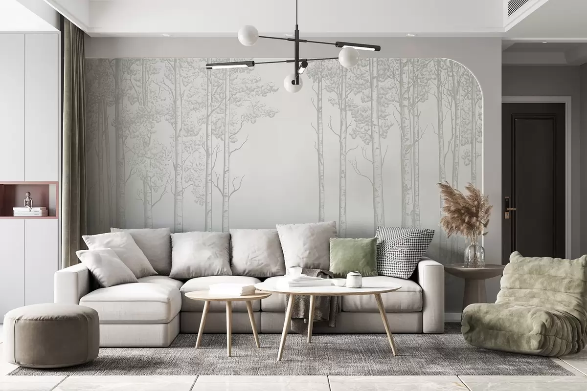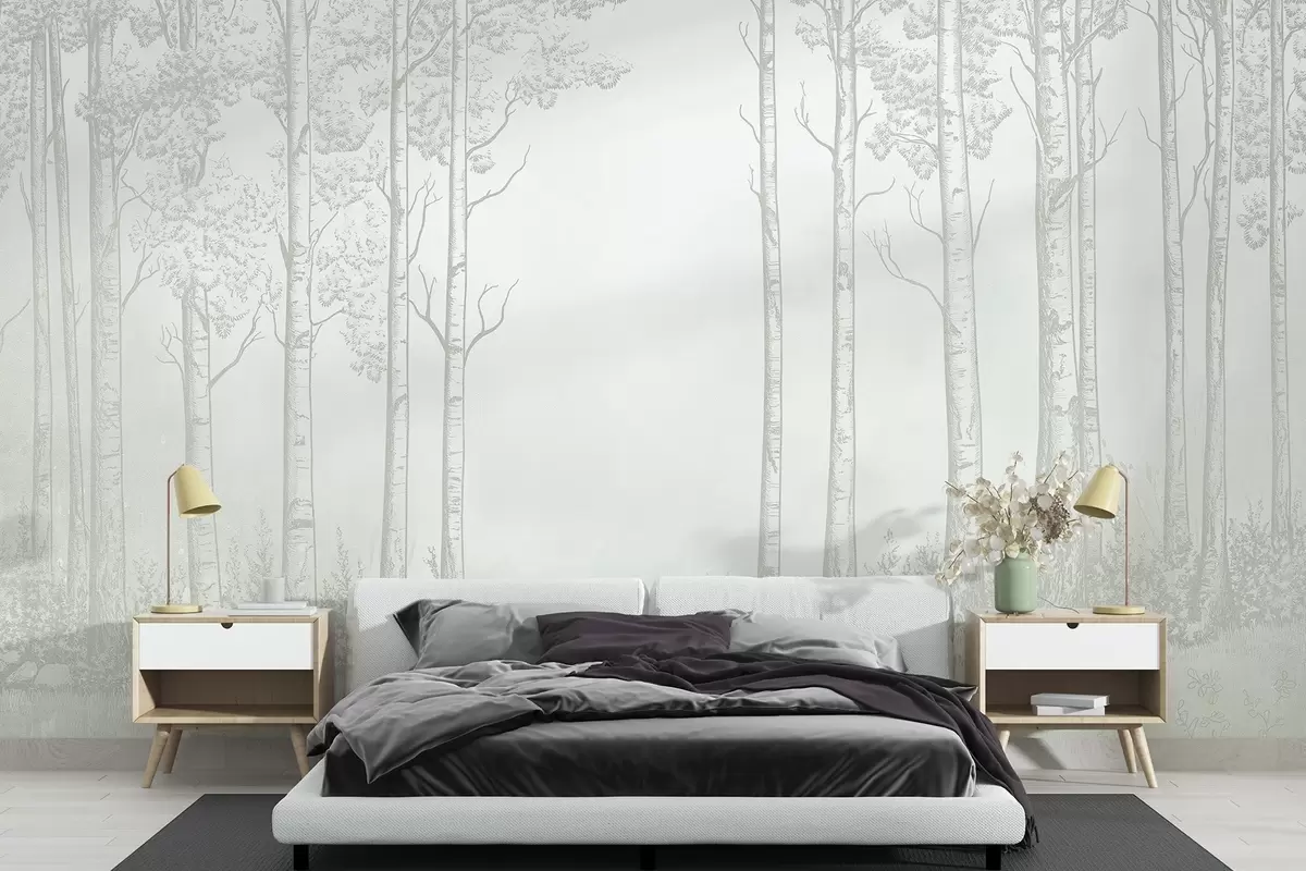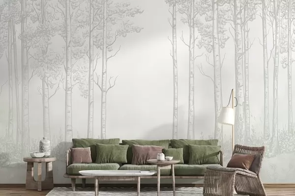 Murais de parede Floresta com bétulas, minimalismo, natureza, paleta de cores verdes Nr. w04009v1