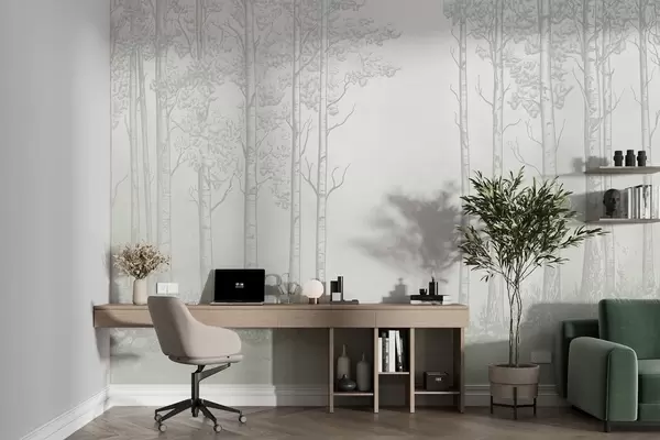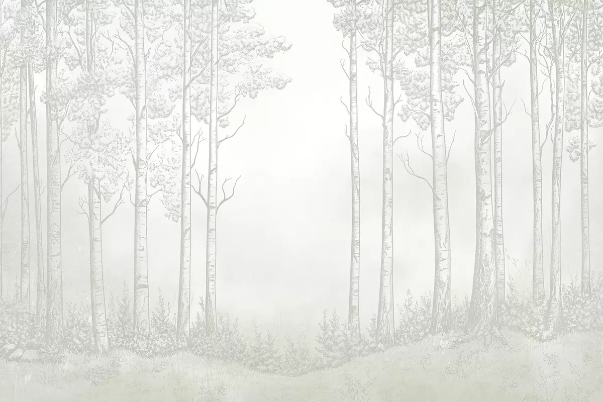Murais de parede Floresta com bétulas, minimalismo, natureza, paleta de cores verdes Nr. w04009v1