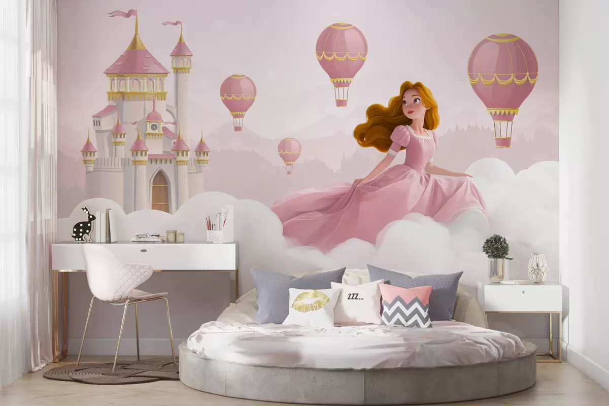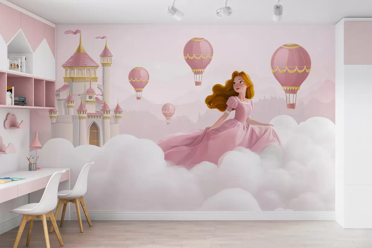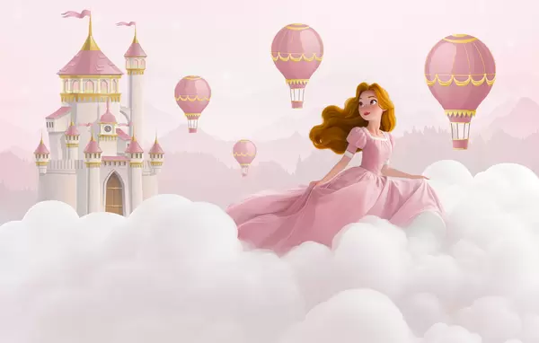 Murais de parede Princesa entre as nuvens no fundo da paisagem com o castelo Nr. w04015v1