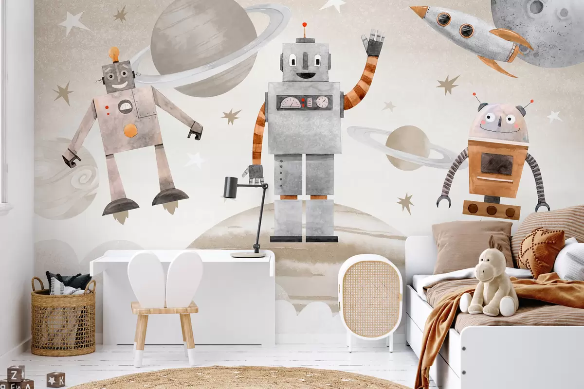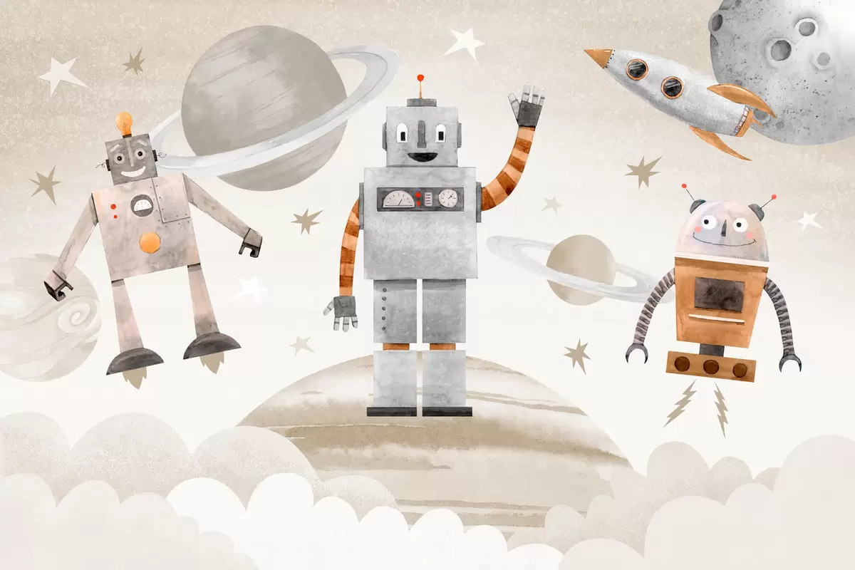 Murais de parede Robôs no espaço em estilo aquarela Nr. w04016v1