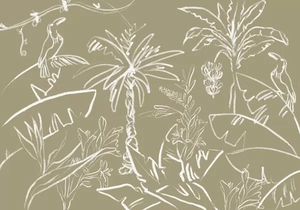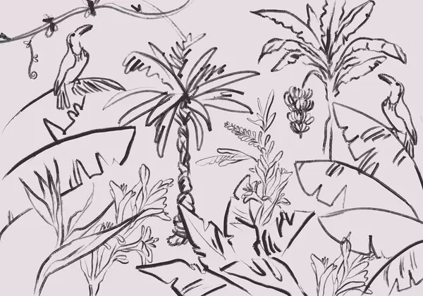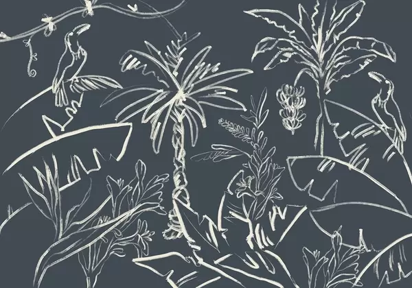 Murais de parede Padrão tropical na cor preta, palmeiras, bananas, gráficos de contorno Nr. w04020v7