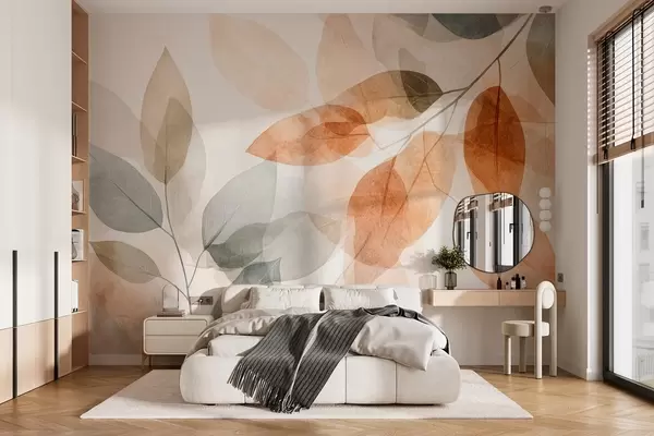 Murais de parede folhas em estilo aquarela em tons de sépia e cinza Nr. w04024