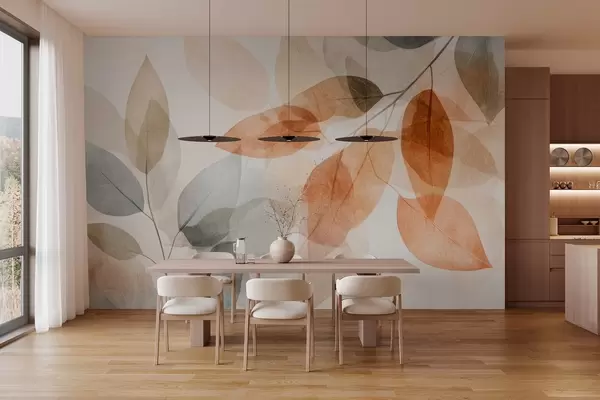 Murais de parede folhas em estilo aquarela em tons de sépia e cinza Nr. w04024