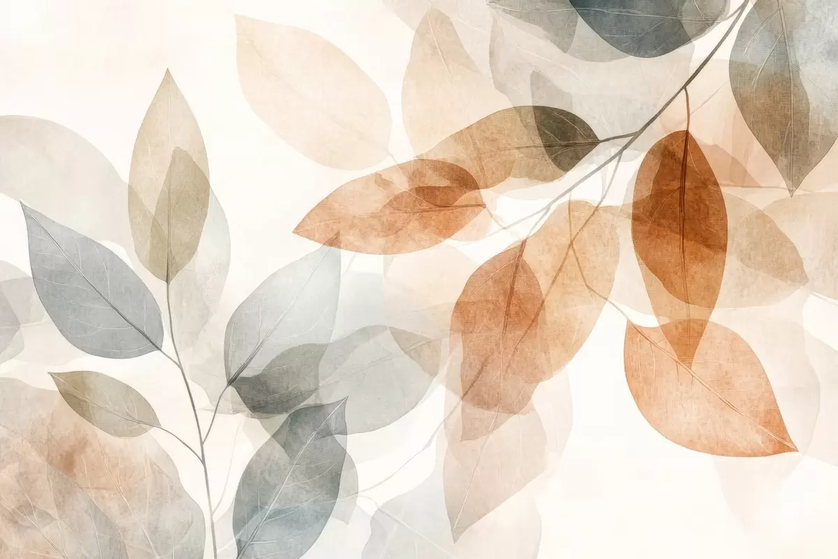Murais de parede folhas em estilo aquarela em tons de sépia e cinza Nr. w04024