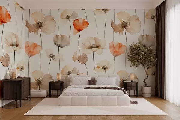 Murais de parede papoulas encaracoladas em estilo aquarela Nr. w04031