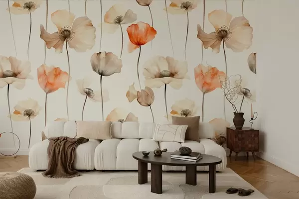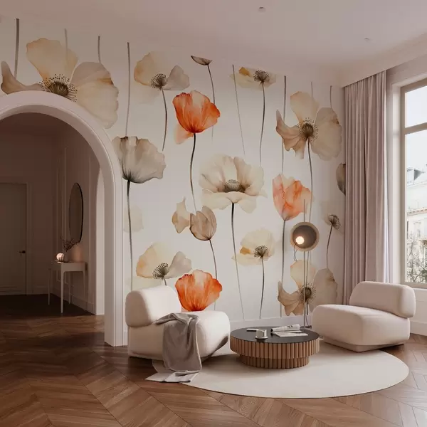 Murais de parede papoulas encaracoladas em estilo aquarela Nr. w04031