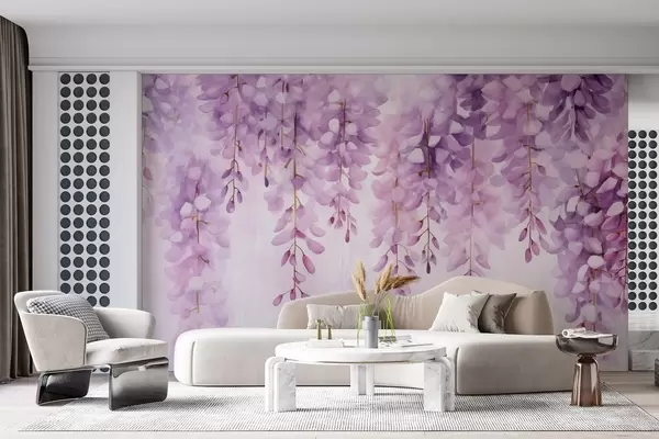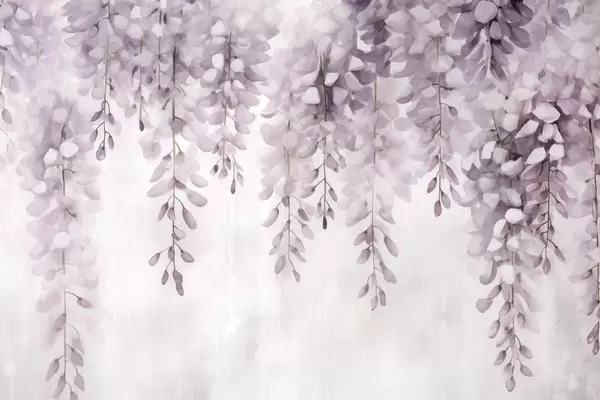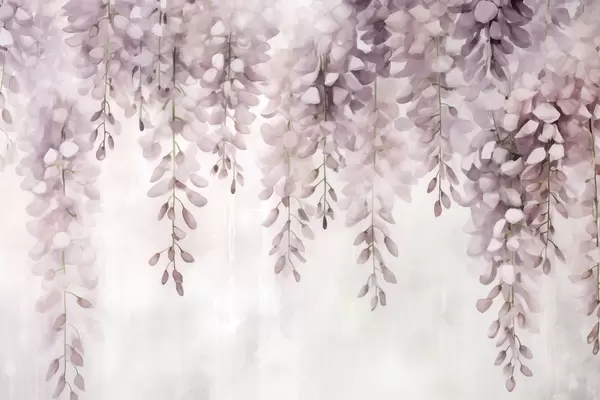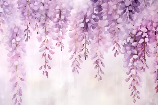 Murais de parede Composição delicada em aquarela com glicínias em cascata em tons suaves de lavanda e rosa, criando uma atmosfera pacífica, Nr. w04034