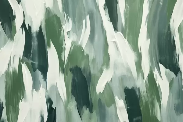 Murais de parede Textura abstrata de pinceladas ousadas em verde e creme, evocando o ritmo da folhagem soprada pelo vento e o movimento orgânico Nr. w04035