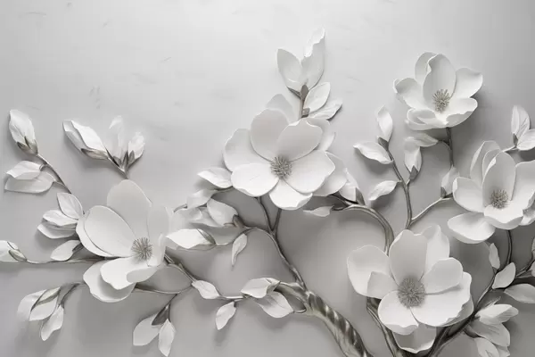 Murais de parede Ramo floral dimensional em branco puro e tons neutros Nr. w04039v2