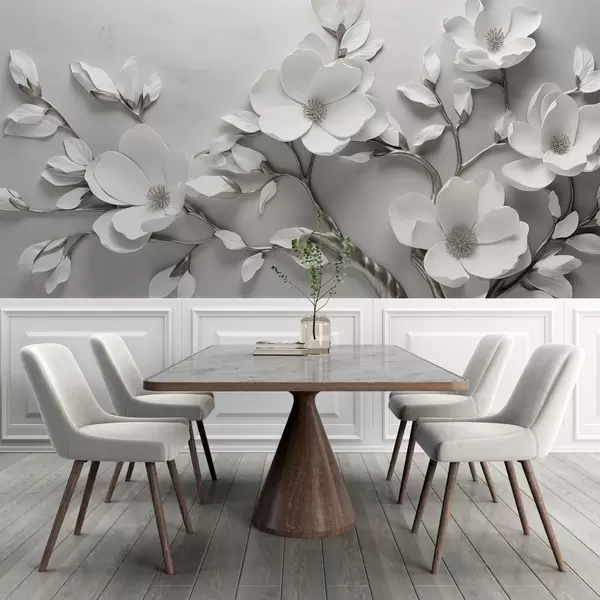murais de parede Ramo floral dimensional em branco puro e tons neutros w04039v2