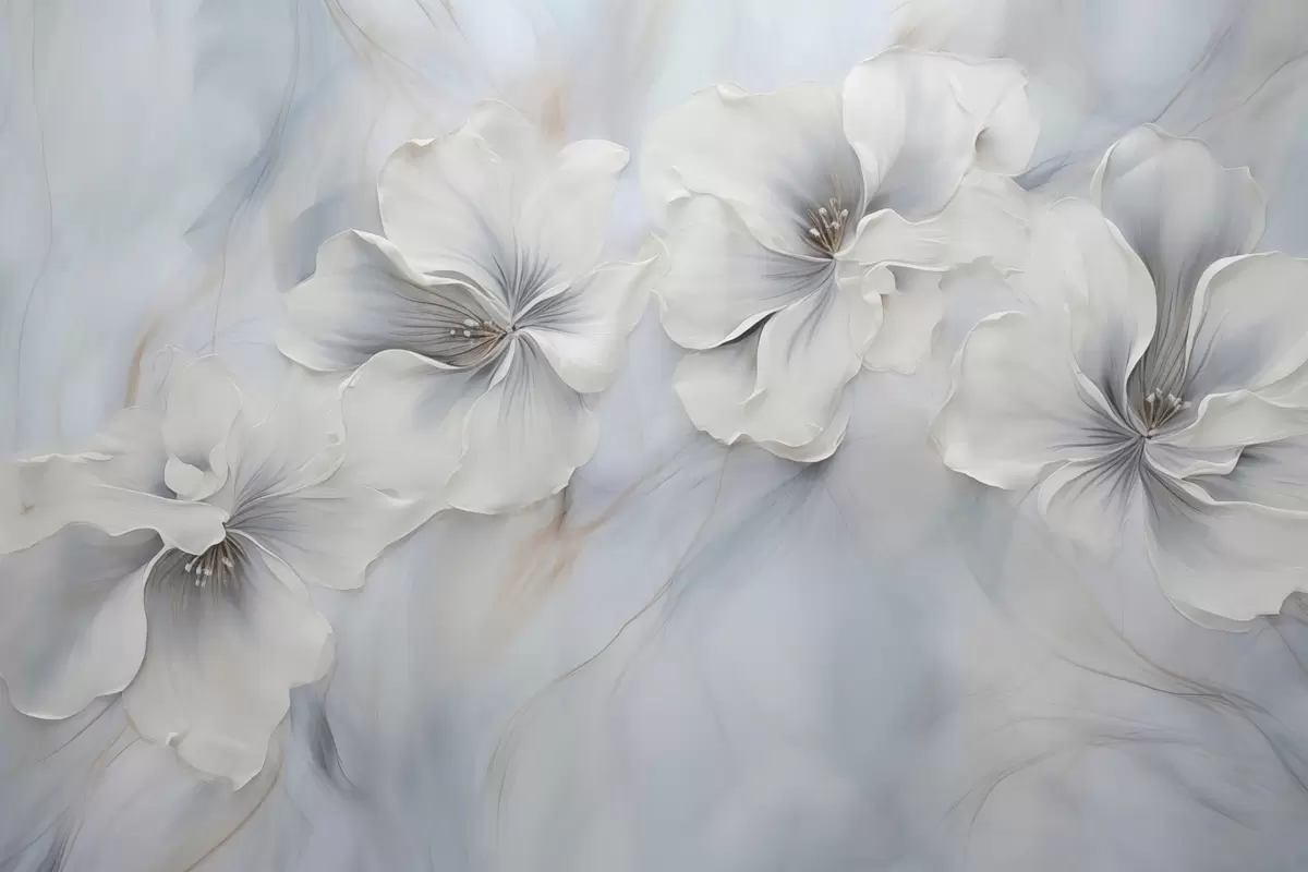 Murais de parede Pintura a óleo de flores sobre fundo azul Nr. w04047