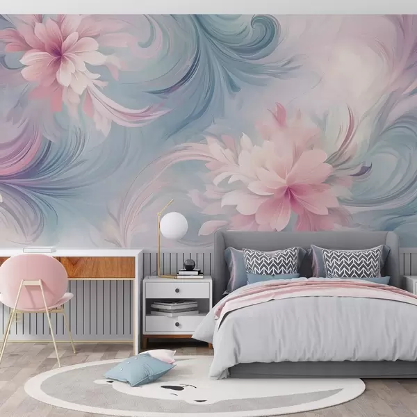 Murais de parede Flores e folhas nas cores rosa e azul Nr. w04048