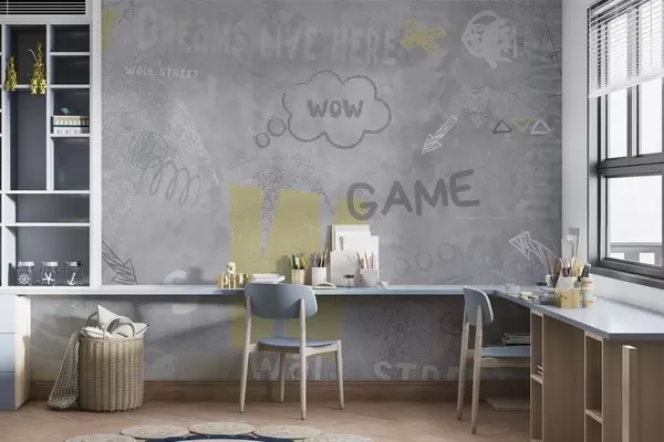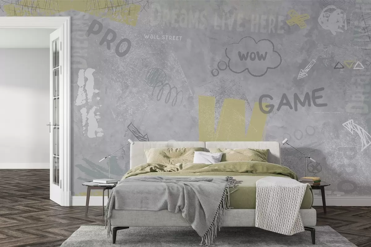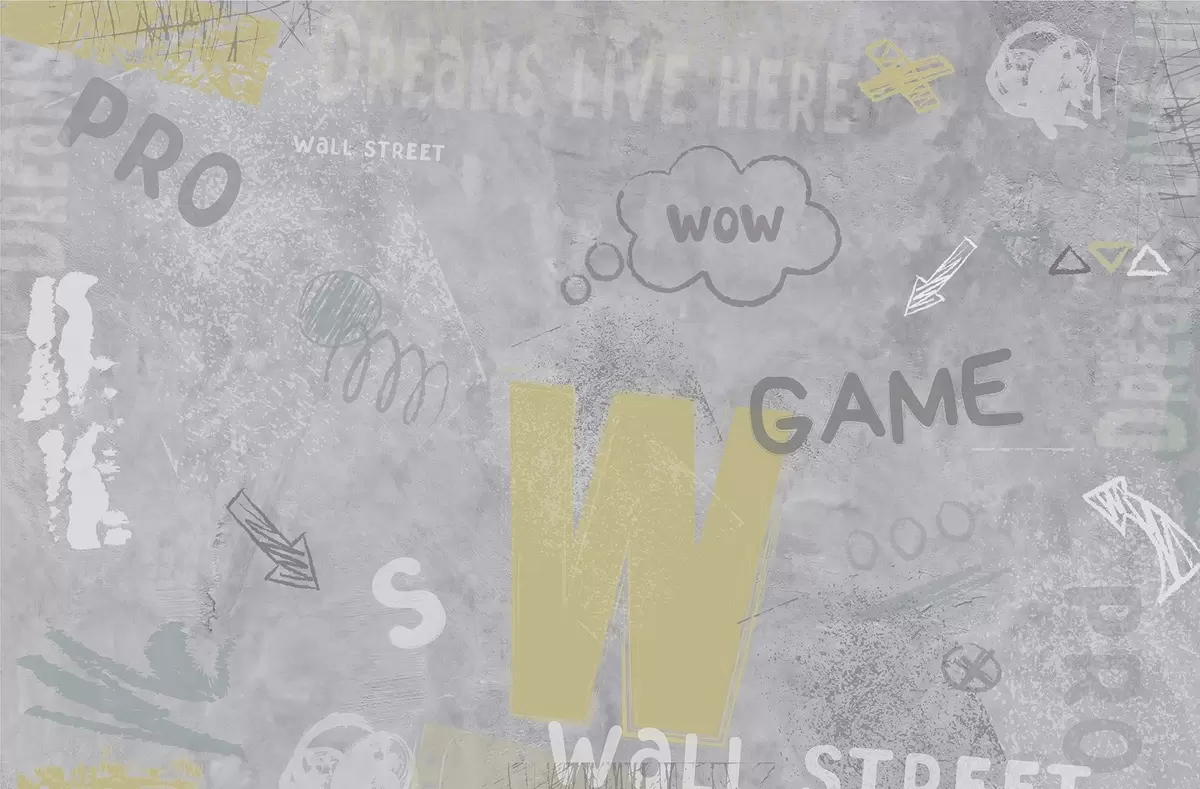 Murais de parede Desenho no estilo street art com inscrições em amarelo no fundo de um muro de concreto Nr. w04056