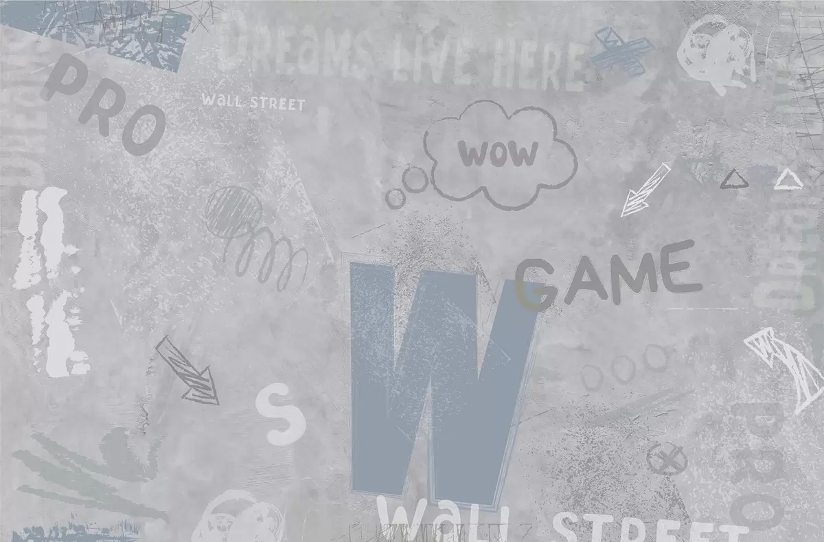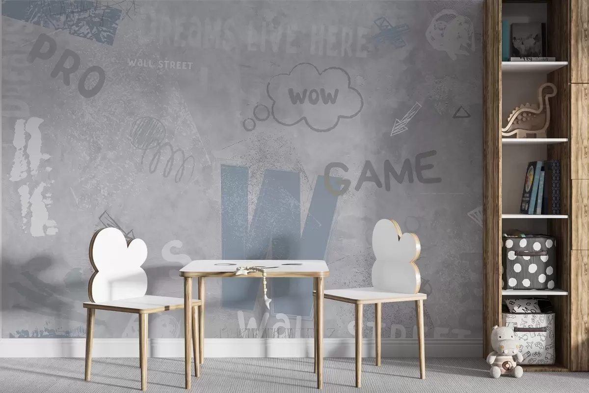 Murais de parede Design em estilo de arte de rua com inscrições em azul no fundo de uma parede de concreto Nr. w04056v1