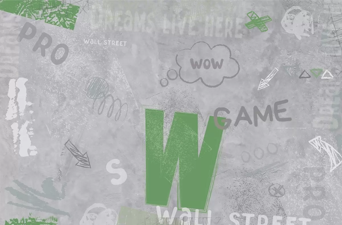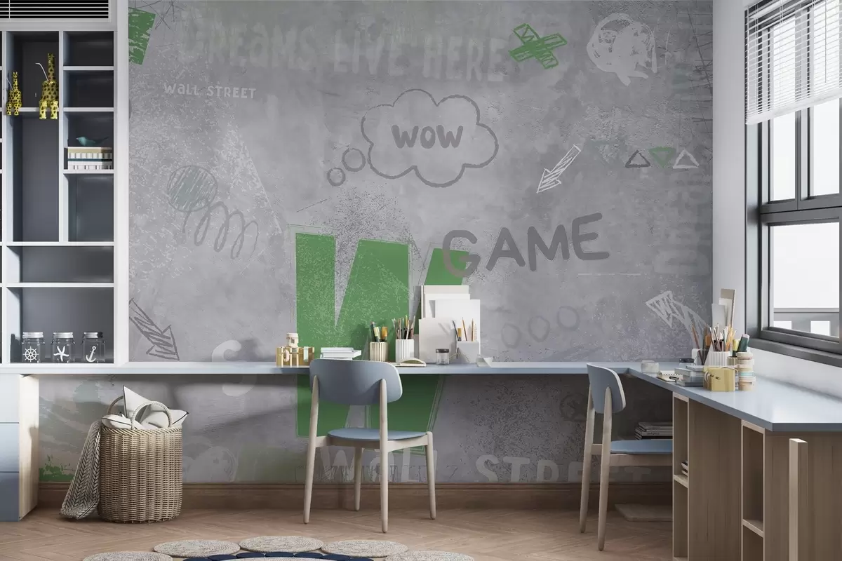 Murais de parede Desenho de arte de rua com letras verdes no fundo de um muro de concreto Nr. w04056v2