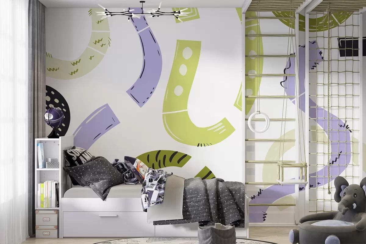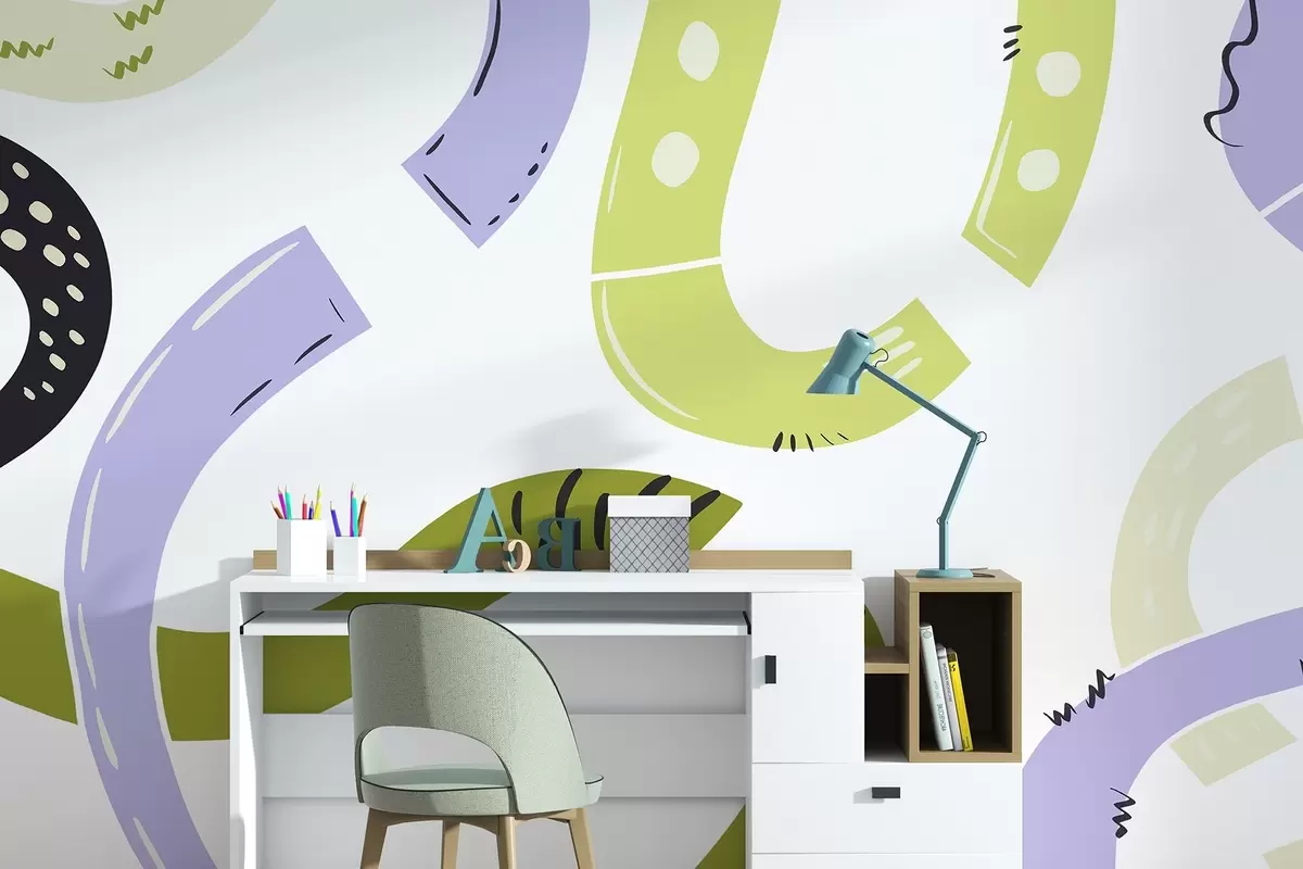 Murais de parede Desenhos abstratos, juvenil, doodles, verde, roxo Nr. w04066v1