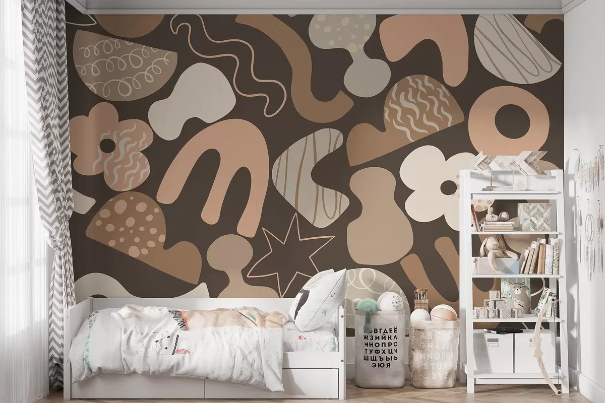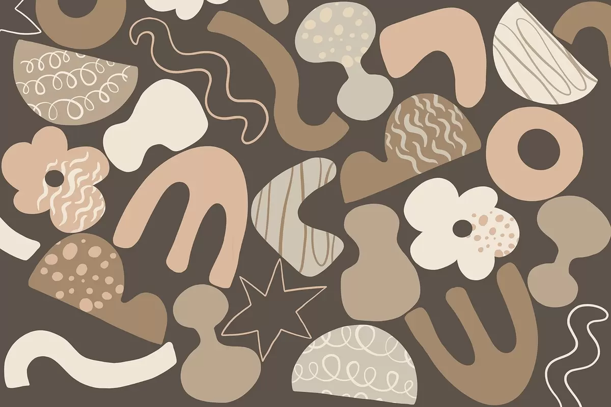 Murais de parede Desenho de figuras geométricas com rabiscos, juvenil, fundo bege escuro Nr. w04068v1
