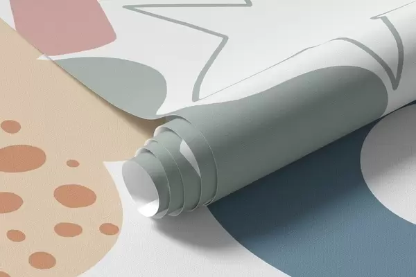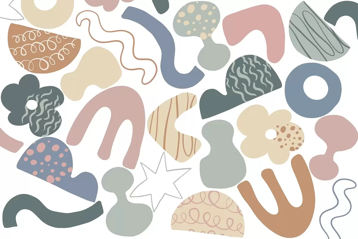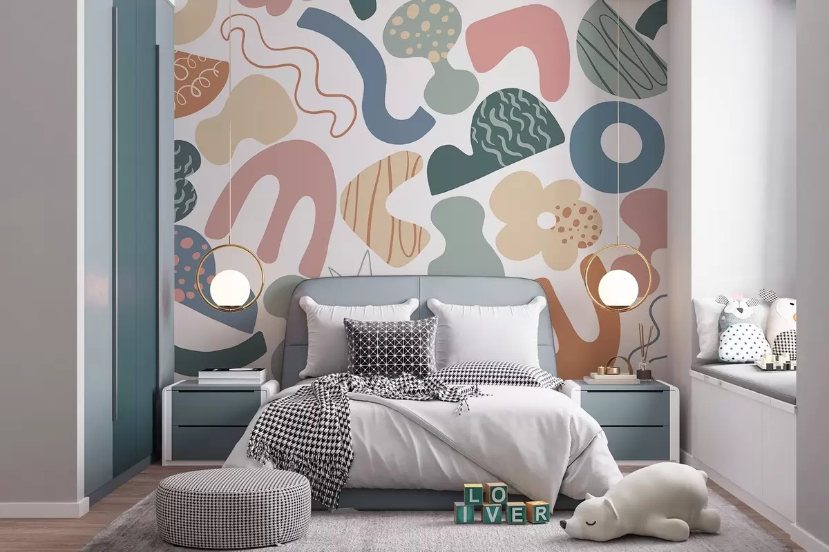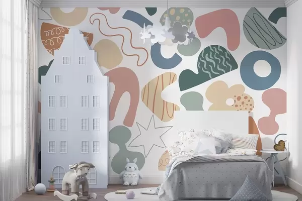 Murais de parede Figuras geométricas com desenho de rabiscos, juvenil, verde, rosa, azul Nr. w04068v2